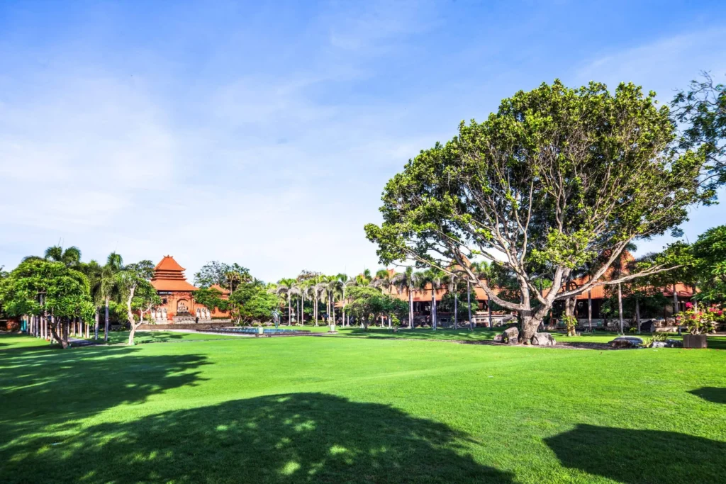 Taman Bhagawan is a refined beachfront garden venue that combines tropical landscape design with elegant Balinese architectural elements. Overlooking the calm waters of Tanjung Benoa, this expansive outdoor space offers a peaceful and picturesque environment ideal for relaxation, photography, and outdoor gatherings. Its manicured lawns, cultural pavilions, and shaded pathways create an inviting atmosphere for visitors seeking a tranquil escape within the Nusa Dua area.